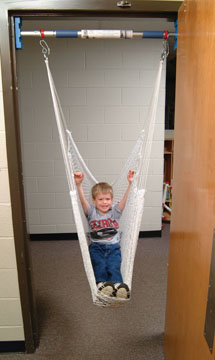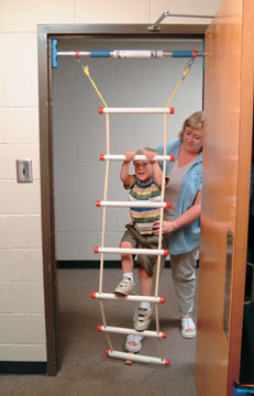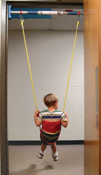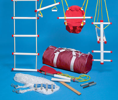Bag weighs just under 25 lbs. (11.3 kg) and provides you with almost everything you need for gross motor, sensory integration and upper body development. Each bag includes a support bar (for supporting each accessory in your doorway, no tools needeed), trapeze bar, sling seat, net swing, toddler swing, glidger (one seat) and climbing ladder. Don't pass this one up.....it's a therapist's dream and kids love it! Includes bag plus 7 accessories, listed below.